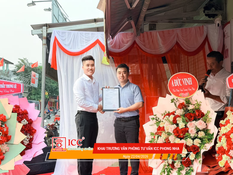 Ngày 22/04/2026, ICC Group long trọng tổ chức lễ khai trương Văn phòng Tư vấn ICC Phong Nha, Quảng Trị, đánh dấu cột mốc quan trọng trong chiến lược mở rộng hệ thống và nâng cao chất lượng dịch vụ tư vấn tại khu vực miền Trung.
